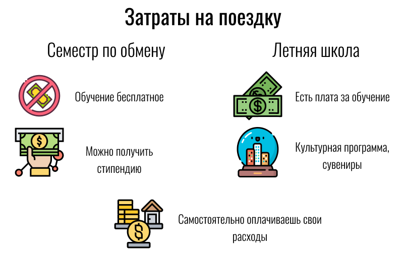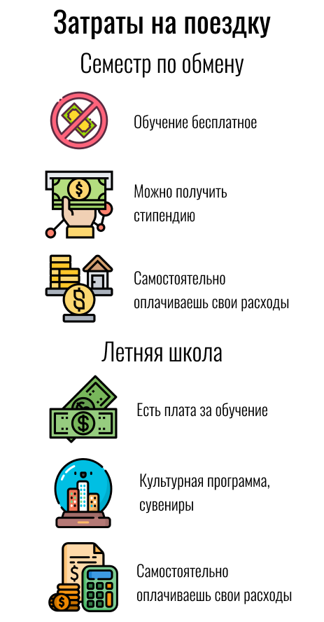 Выдающиеся студенты имеют возможность получить стипендию на семестр по обмену, которая будет покрывать их расходы и возместит стоимость перелёта туда-обратно, однако конкурс на стипендии высок, а список принимающих вузов ограничен.